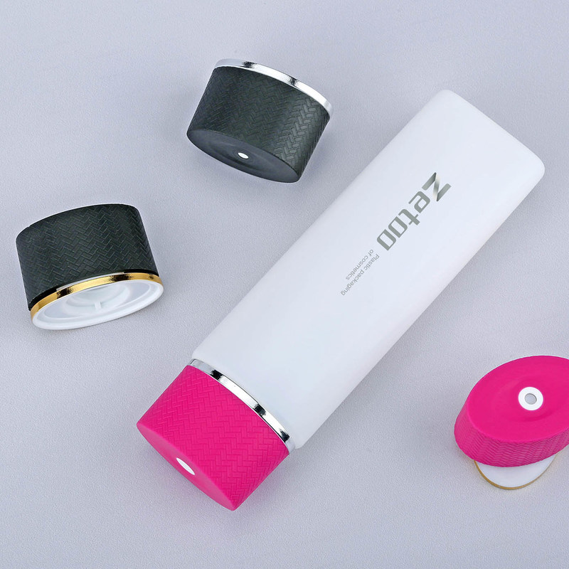 Customized Cosmetic PE Oval Bottle with 40mm Diameter Two-Color Woven Pattern Center-Dispensing Cap |